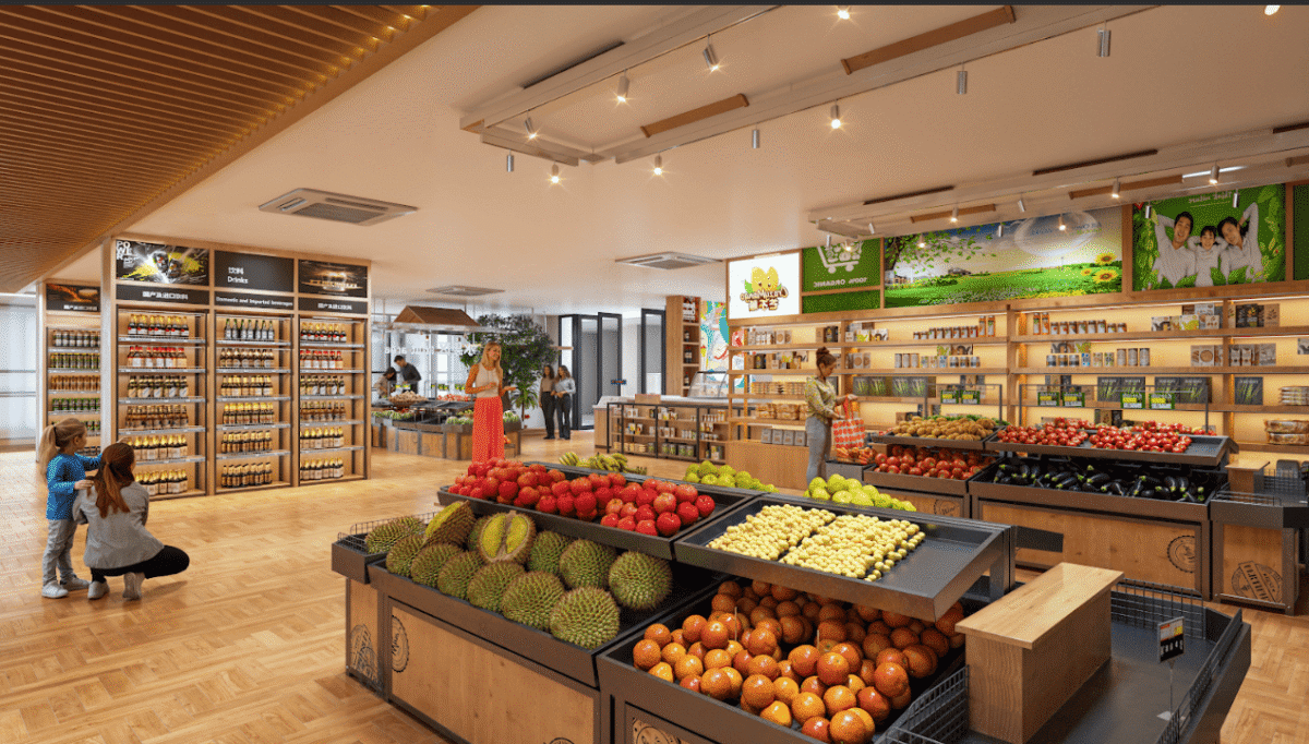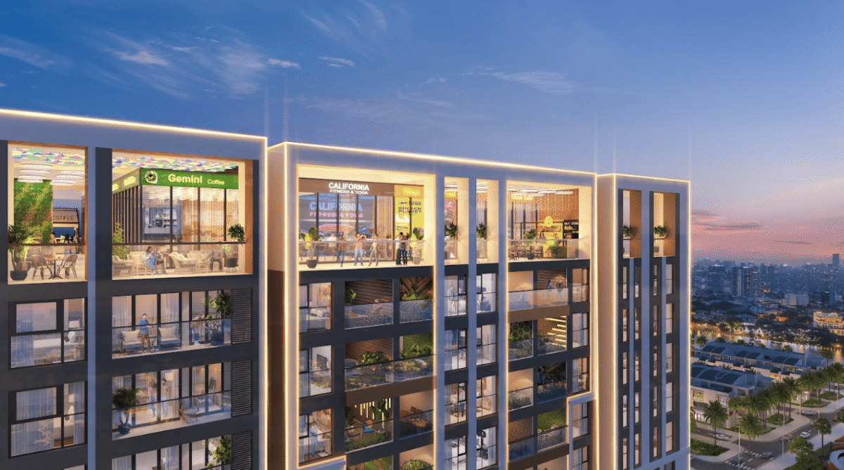 - Tầng 1: Trung tâm thương mại, sinh hoạt cộng đồng.