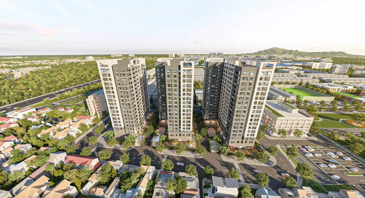Gồm 3 tòa chung cư nhà ở xã hội cao 18 tầng và 1 tầng hầm với 846 căn tổng 3 toà S1, S2, S3