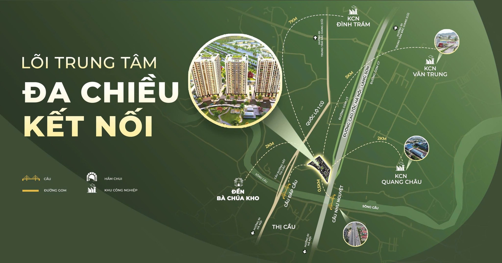 Dự án sở hữu vị trí đắc địa đối diện KCN Quang Châu – nơi tập trung hàng chục nghìn lao động và nhiều doanh nghiệp FDI lớn như Foxconn, Luxshare, JA Solar… Từ dự án NOXH Hoàng Ninh Ecolife, cư dân dễ dàng di chuyển đến:
