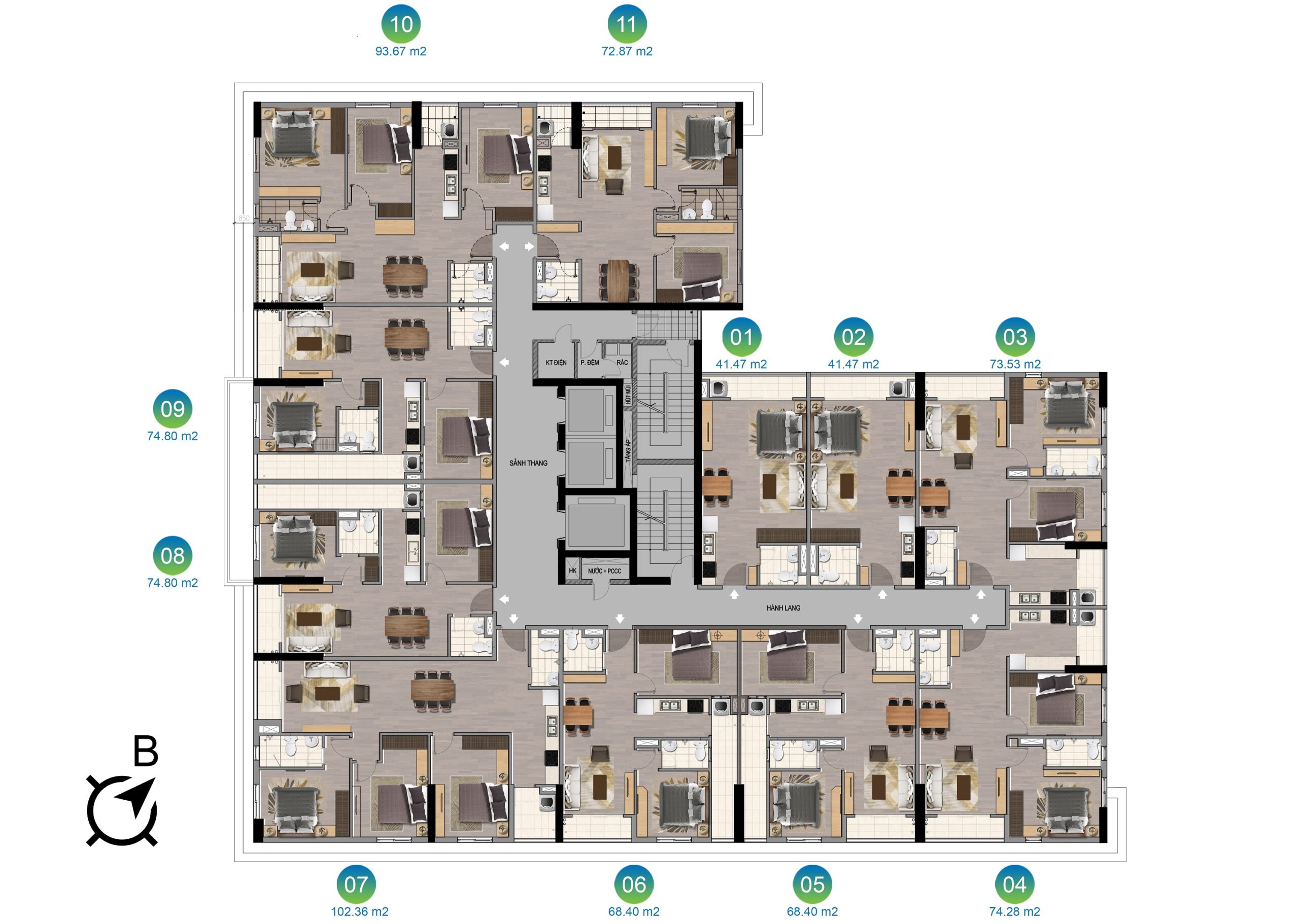 • Tầng 3 – 19 là khối căng hộ chung cư với cơ cấu diện tích đa dạng.